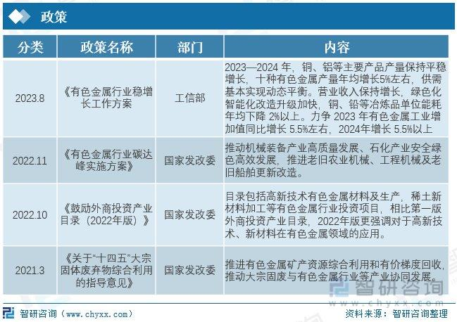 相關(guān)報告:智研咨詢發(fā)布的《2023-2029年中國有色金屬行業(yè)市場發(fā)展現(xiàn)狀及競爭格局預(yù)測報告》