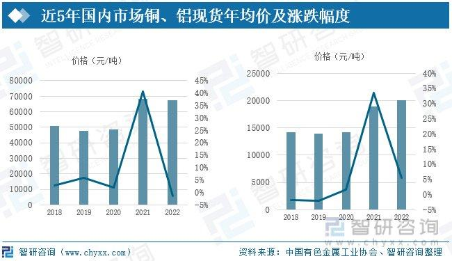 我國煉銅行業(yè)集中度較高,龍頭企業(yè)之間差距較小;我國電解鋁行業(yè)集中度低,行業(yè)較為分散,主要是在我國有色金屬發(fā)展的初期階段,電解鋁產(chǎn)能擴(kuò)張嚴(yán)重,行業(yè)技術(shù)壁壘偏低,行業(yè)中小企業(yè)參與者眾多,從而導(dǎo)致行業(yè)市場集中度分散。2022年,全球有色金屬價格大浮波動,上半年,受俄烏沖突、能源危機(jī)、南美供應(yīng)擾動等因素的影響,銅價不斷走高,2022年一季度銅價創(chuàng)歷史新高,二季度在美聯(lián)儲加息的影響下價格回調(diào),2022年,我國銅現(xiàn)貨年均價為67470元/噸,較上年同比減少1.5%。鋁行業(yè)是國家重要的基礎(chǔ)產(chǎn)業(yè),氧化鋁和原鋁作為重要的基礎(chǔ)原材料,與機(jī)電、電力、航空航天、造船等行業(yè)密切相關(guān),其產(chǎn)品價格隨國內(nèi)外宏觀經(jīng)濟(jì)波動呈周期性波動。2022年我國鋁現(xiàn)貨年均價為20006元/噸,較上年增加5.6%。