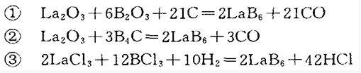 適用于CVD法生產(chǎn)LaB6的化學反應式有: