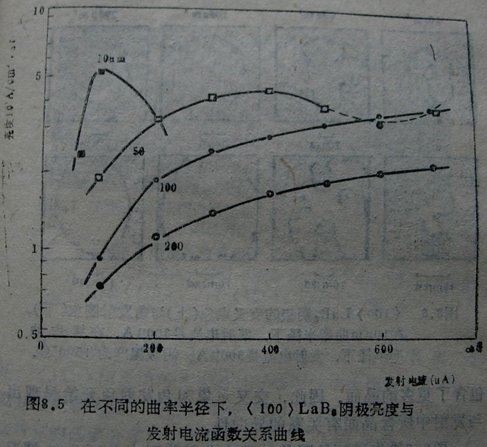 實驗指出,尖端曲率相當小時,可以得到低功函數(shù)LaB6所希望有的高亮度。但在長期工作時間內(nèi),小曲率半徑的陰極僅僅在經(jīng)過較短的工作時間后,尖端的小球面消失。100μm的大曲率半徑在超過1500小時后,仍能保持垂直于光軸的(100)面,因而提供了相當穩(wěn)定的發(fā)射。