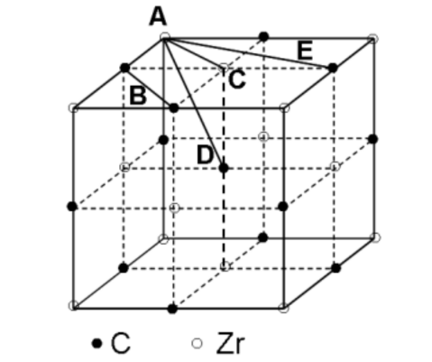 下圖是ZrC的晶體結(jié)構(gòu)(面心立方晶體結(jié)構(gòu)),Zr原子組成立方晶格,C原子位于晶格的八面體間隙位置。在碳-鋯化學(xué)反應(yīng)系統(tǒng)中存在很寬范圍的非化學(xué)計(jì)量現(xiàn)象,即ZrCx(0.5≤x≤1)。因此碳化鋯(ZrC)是一種非化學(xué)計(jì)量間隙化合物,ZrC陶瓷材料中普遍存在著碳空位。