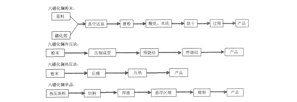 另外,德國六硼化鑭粉末生產(chǎn)已系列化。英國、法國、瑞士等國也相繼在實驗室條件下研究硼化鑭材料。
