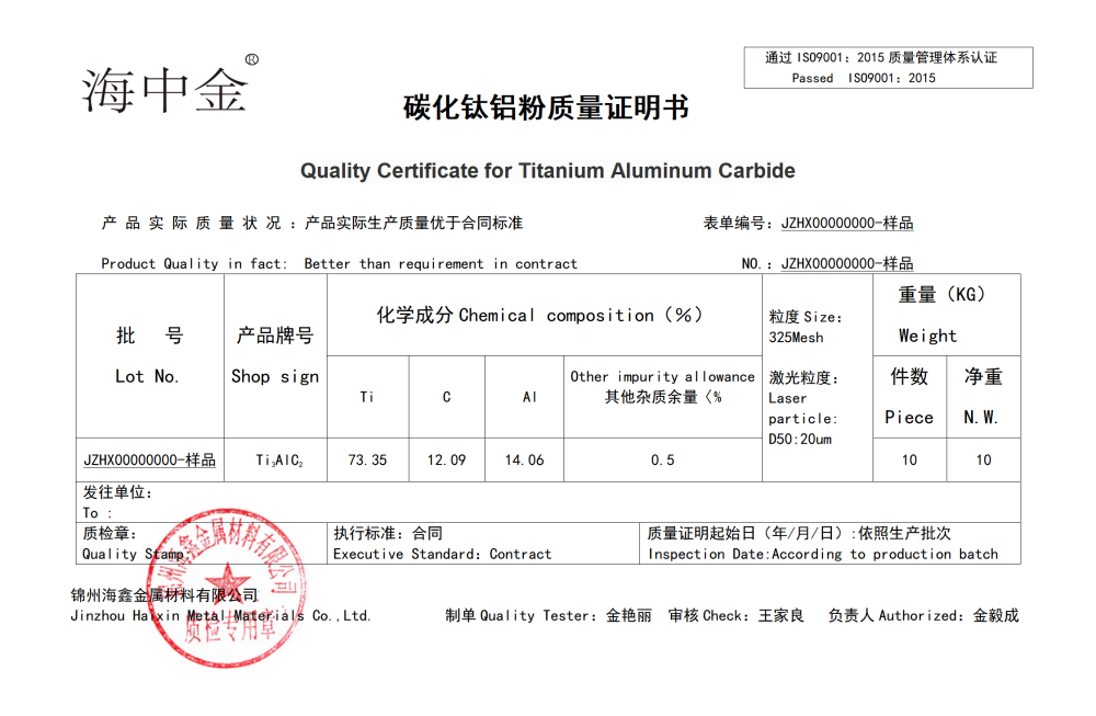 產(chǎn)品名稱:碳化鋁鈦(Ti3AlC2)