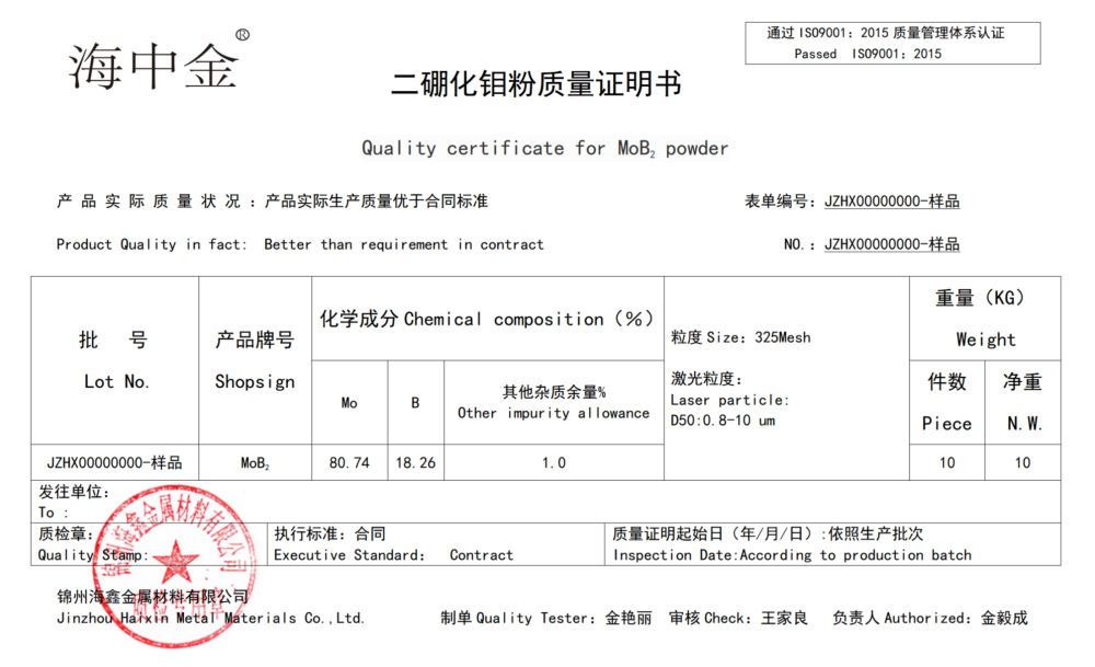 產(chǎn)品名稱:二硼化鉬(MoB2)
