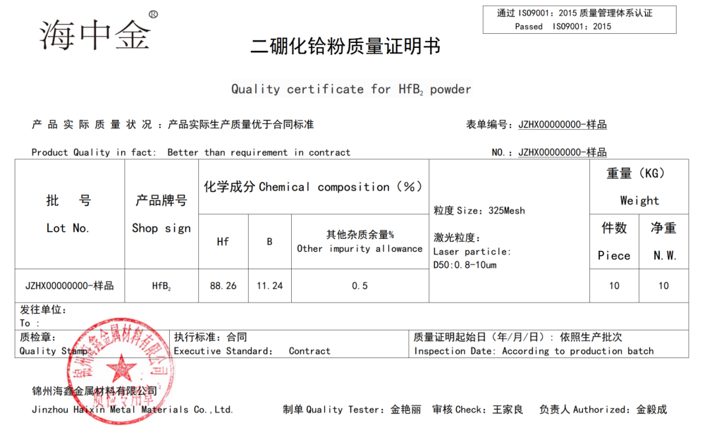 產(chǎn)品名稱:二硼化鉿(HfB2)