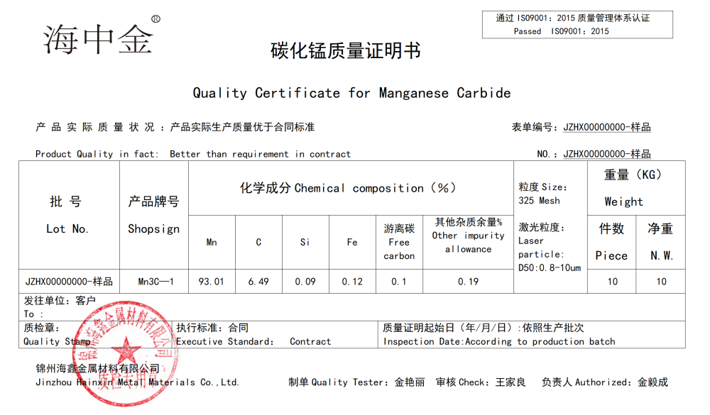 產(chǎn)品名稱:碳錳合金(Mn3C)