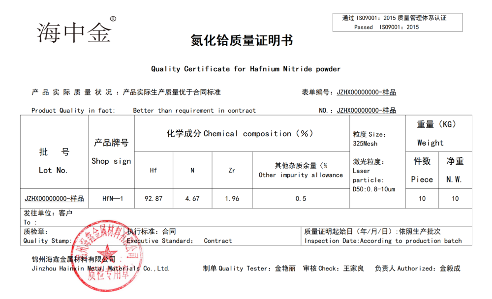 1. 高硬度:氮化鉿的硬度非常高,比鋼鐵和鎢還要高。