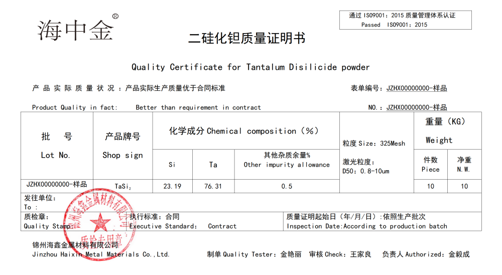2) 高溫結構部件 :由于其優(yōu)異的抗高溫氧化性和良好的兼容性,硅化鉭常用于制造高溫結構部件,如高溫抗氧化涂層和金屬陶瓷。