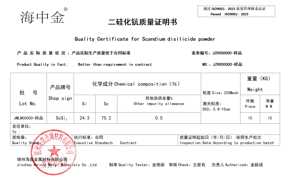 產(chǎn)品名稱:二硅化鈧(ScSi2)