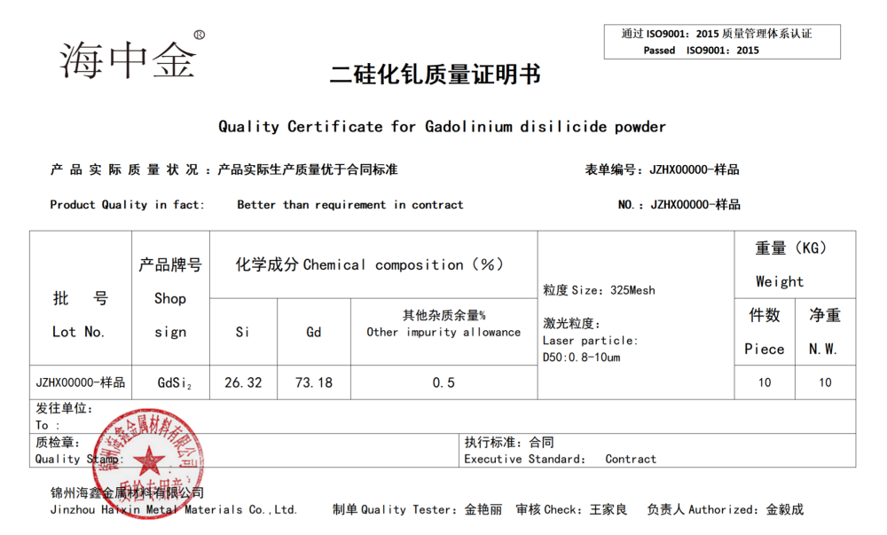 產(chǎn)品名稱:二硅化釓(GbSi2)